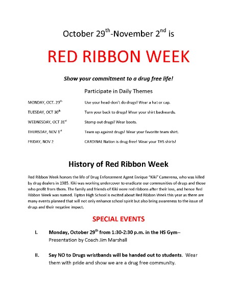 Tipton R-VI High School will be celebrating Red Ribbon week with activities and dress up days all next week!